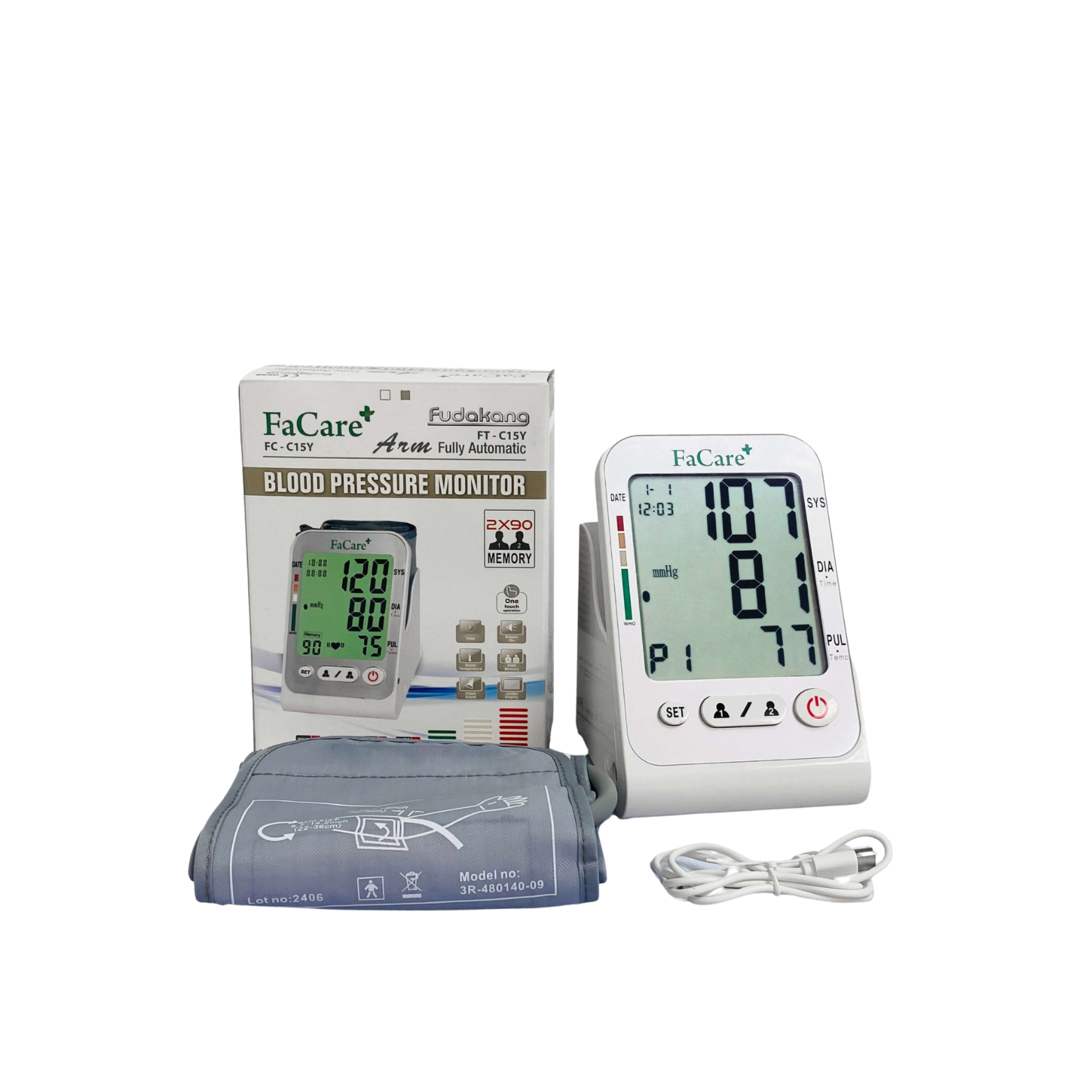 Máy đo huyết áp bắp tay tự động FaCare Model FT - C15Y là sản phẩm hiện đại, được nhập khẩu nguyên chiếc từ FDK - Đài Loan. Sản phẩm đáp ứng tiêu chuẩn chất lượng cao theo FDA Hoa Kỳ và đang được phân phối rộng rãi tại thị trường Mỹ.
